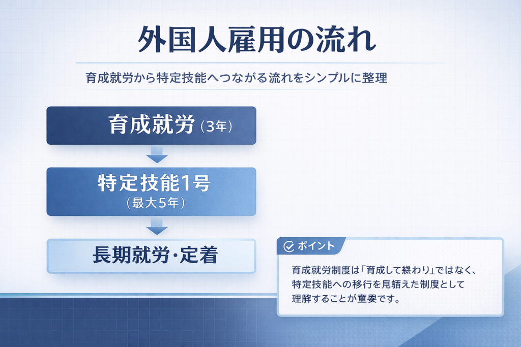 👉 「外国人を育てながら、最終的に特定技能へつなげる制度」